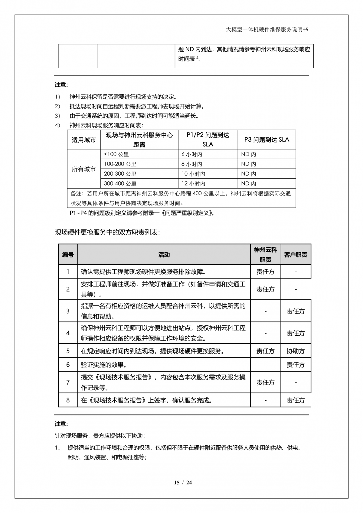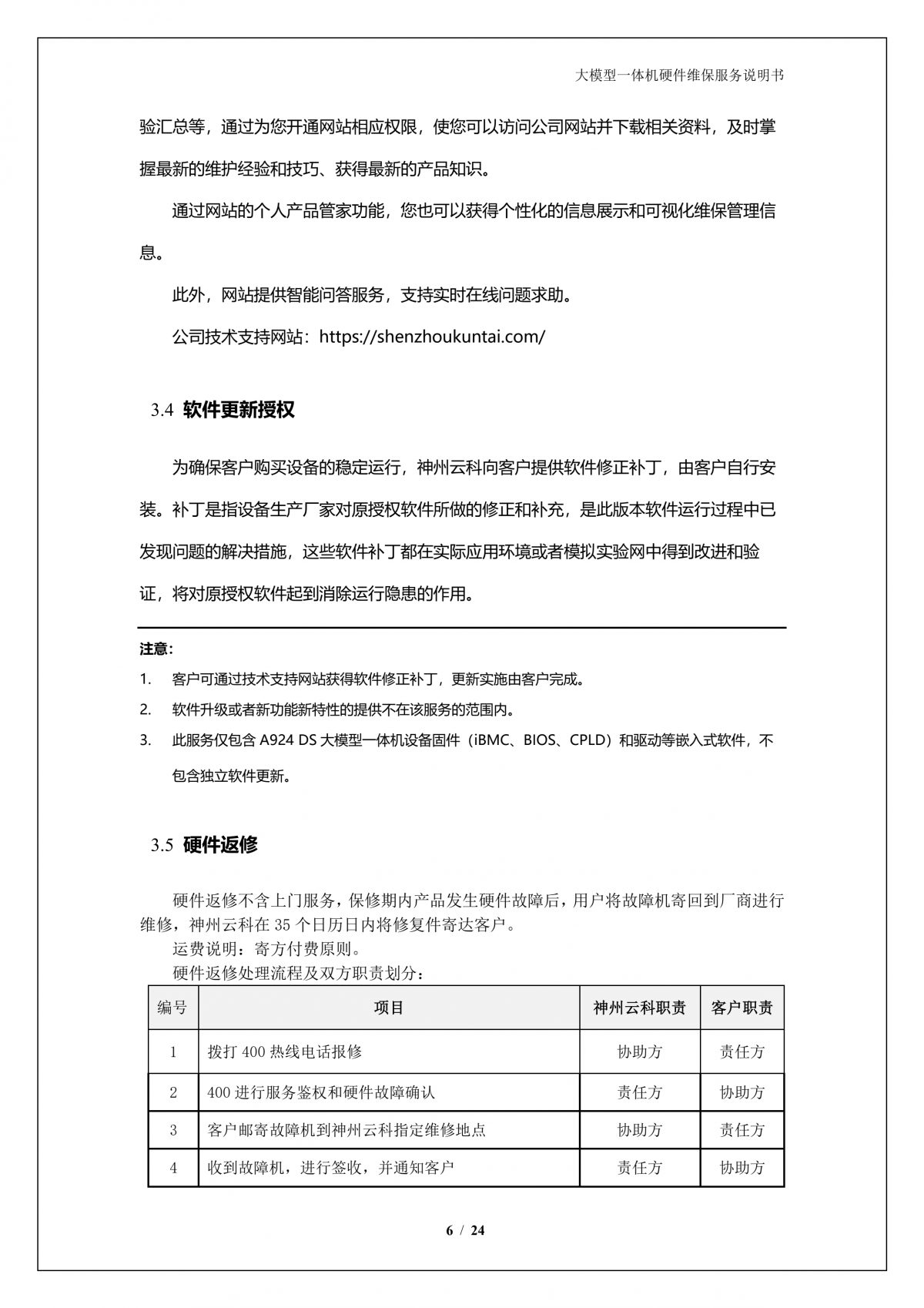 神州A924 DS大模型一体机硬件维保服务说明书_V1.1